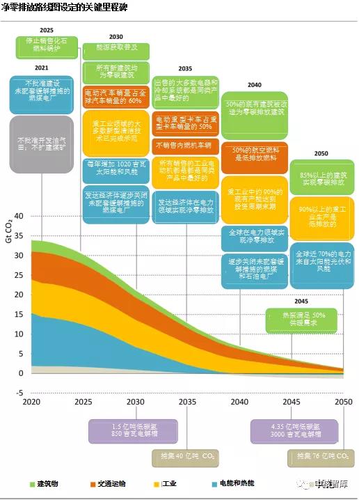 相对于2020年,净零排放路线图中的年度碳减排量